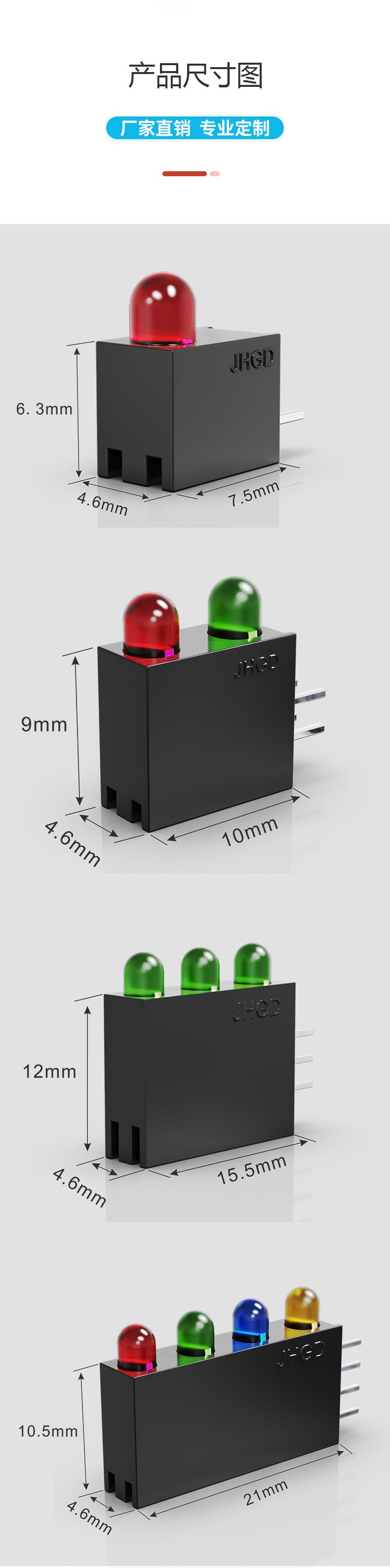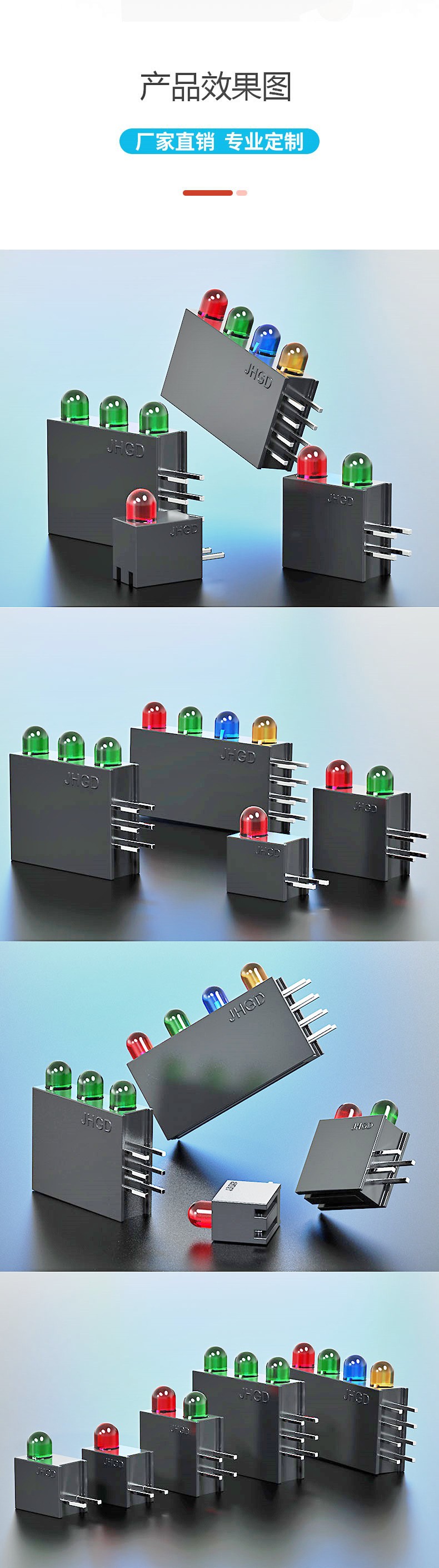 组合灯可定制颜色 四孔四灯双排LED指示灯8脚直插式LED灯黑色底座